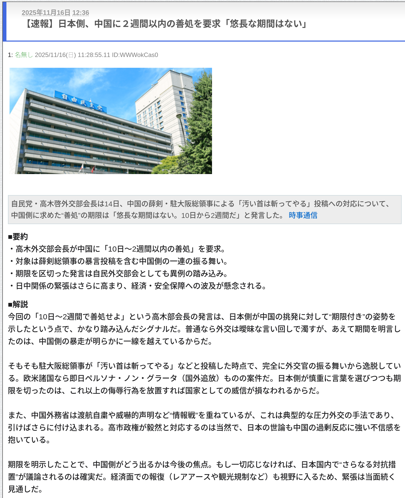 | … | 15無念Nameとしあき25/11/17(月)11:19:54No.1366744654+ 1763345994282.jpg-(15881 B) >高市総理「2週間だけ待ってやる」 |