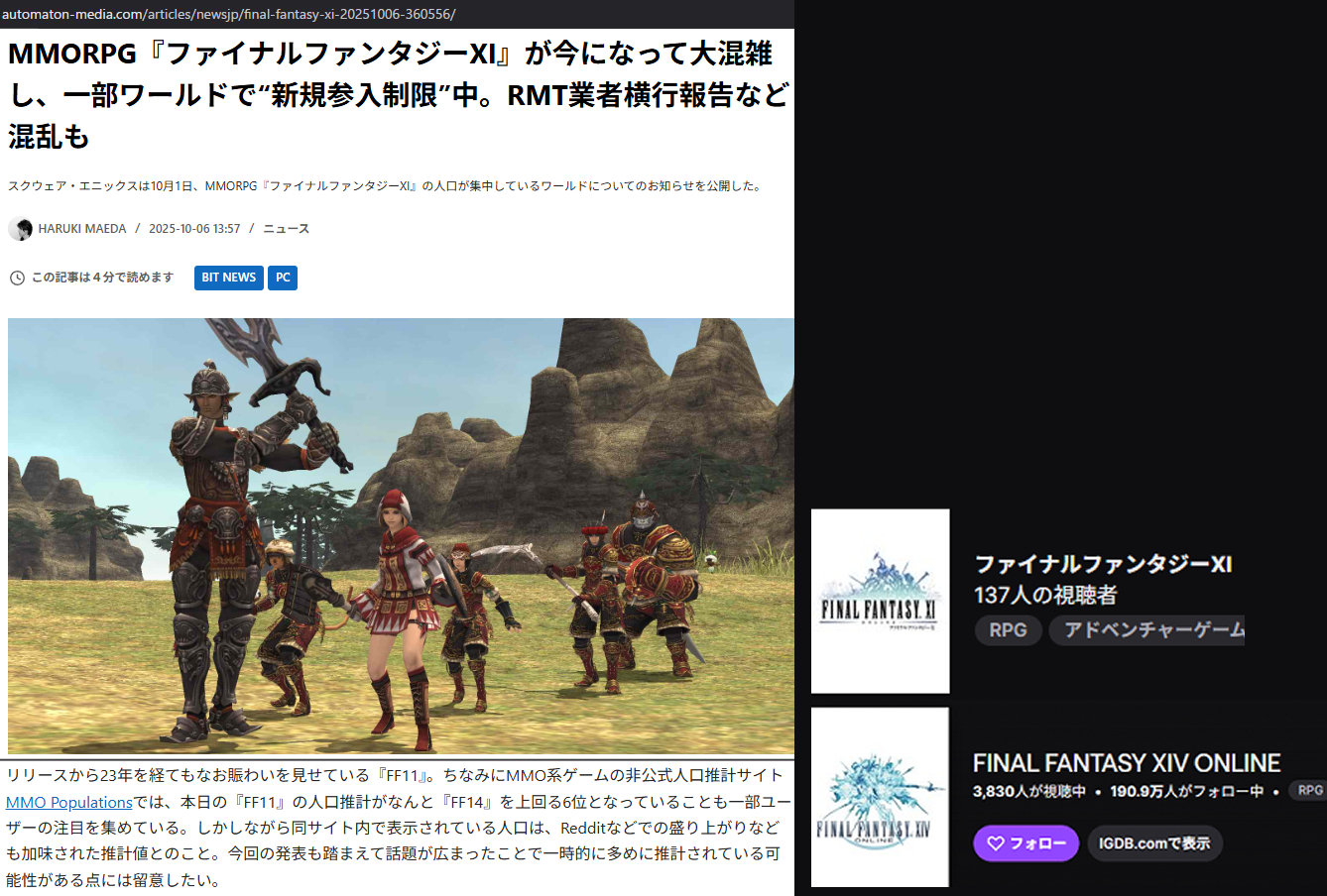 | … | 293無念Nameとしあき25/11/19(水)02:40:44No.1367134651+FF11より先にFF14の方が消えそうというのはこのリハクの目を持ってしてもよめなかったぶい |