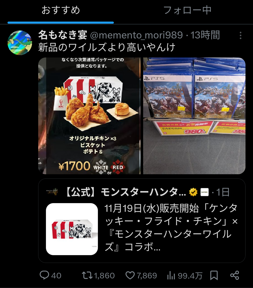 | … | 656無念Nameとしあき25/11/19(水)02:07:31No.1367132180+>こう立て続けにコラボされるとマジで2025年は大好評で人気爆発のモンハンイヤーの予定だったんだろうなあ… |
