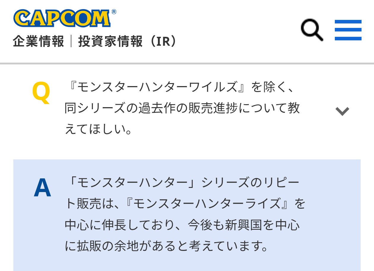 | … | 651無念Nameとしあき25/11/19(水)02:06:33No.1367132110そうだねx1もしかしてカプコンやばい? |