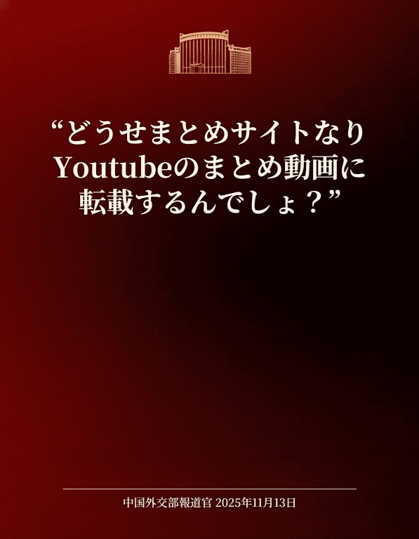 | … | 48無念Nameとしあき25/11/19(水)01:43:49No.1367130152+というより中国側がチンピラとかイキった中学生みたい |