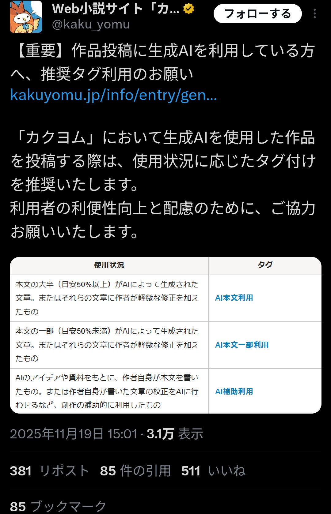 AIタグを付けるよう要請