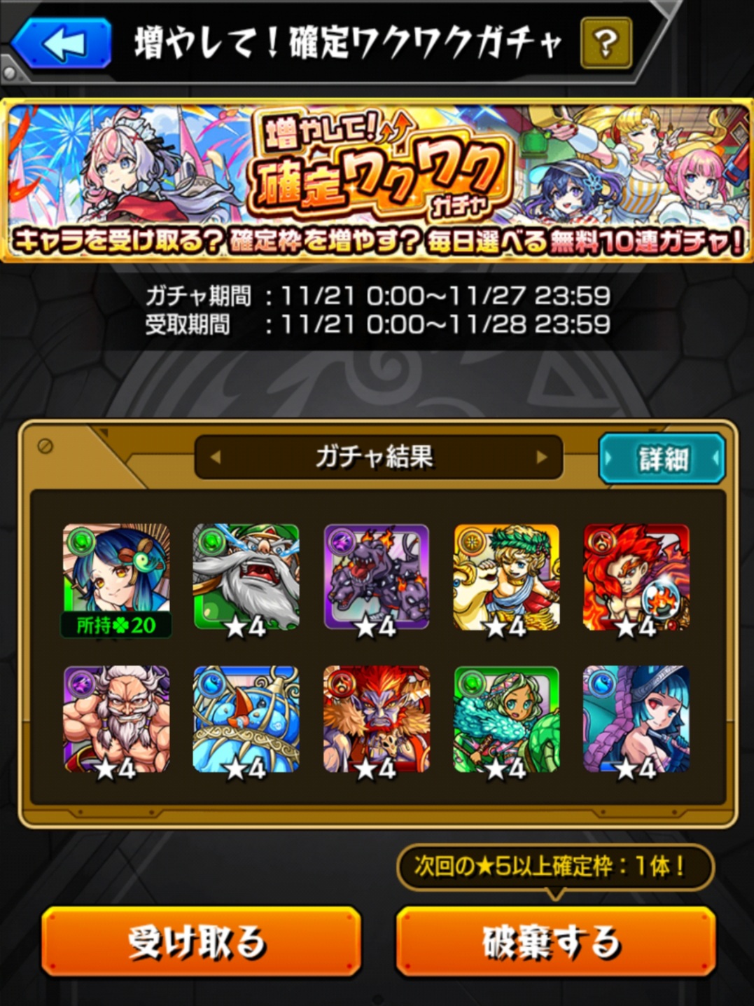 | … | 51無念Nameとしあき25/11/22(土)23:38:19No.1368016679+>>絶対取れなタイミングは未所持キャラが来た時とまだ欲しかった限定キャラとオール★4の時だっけ? |