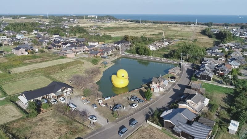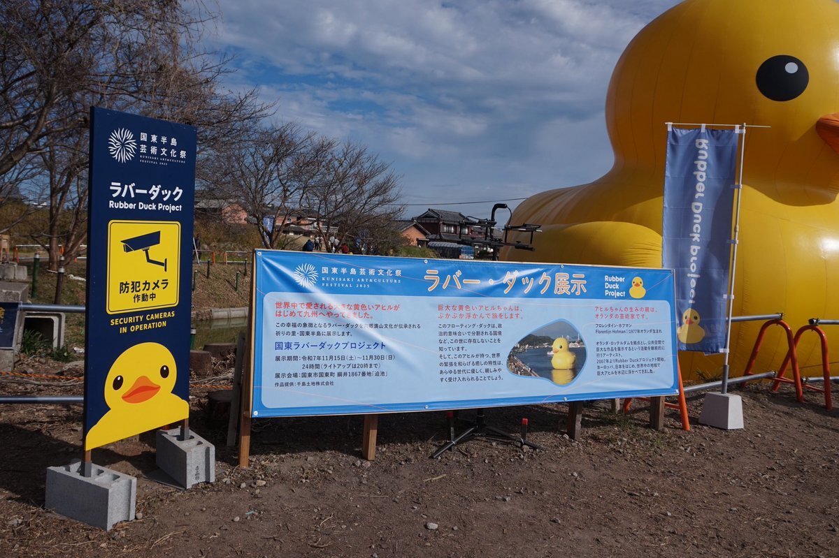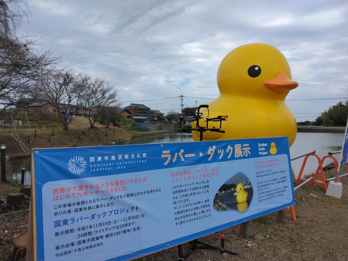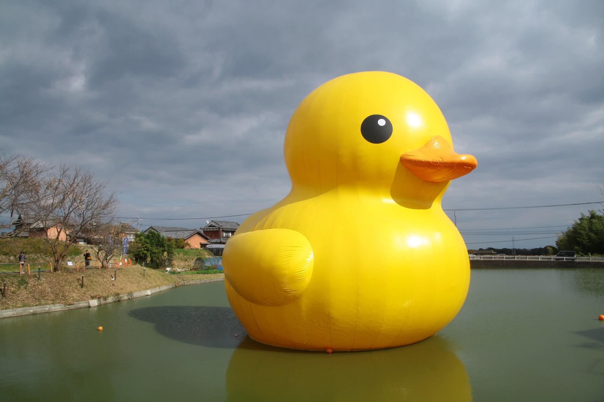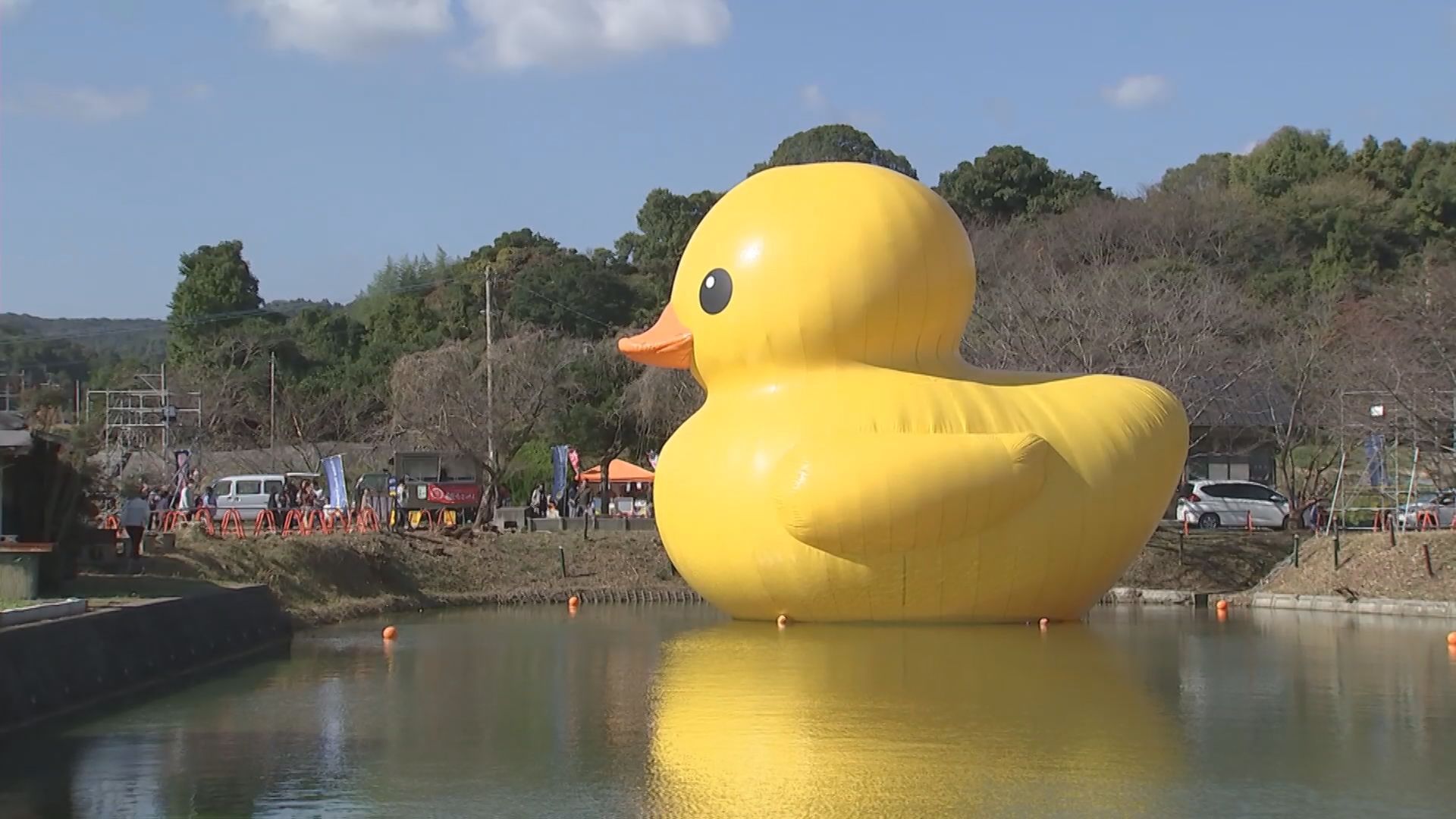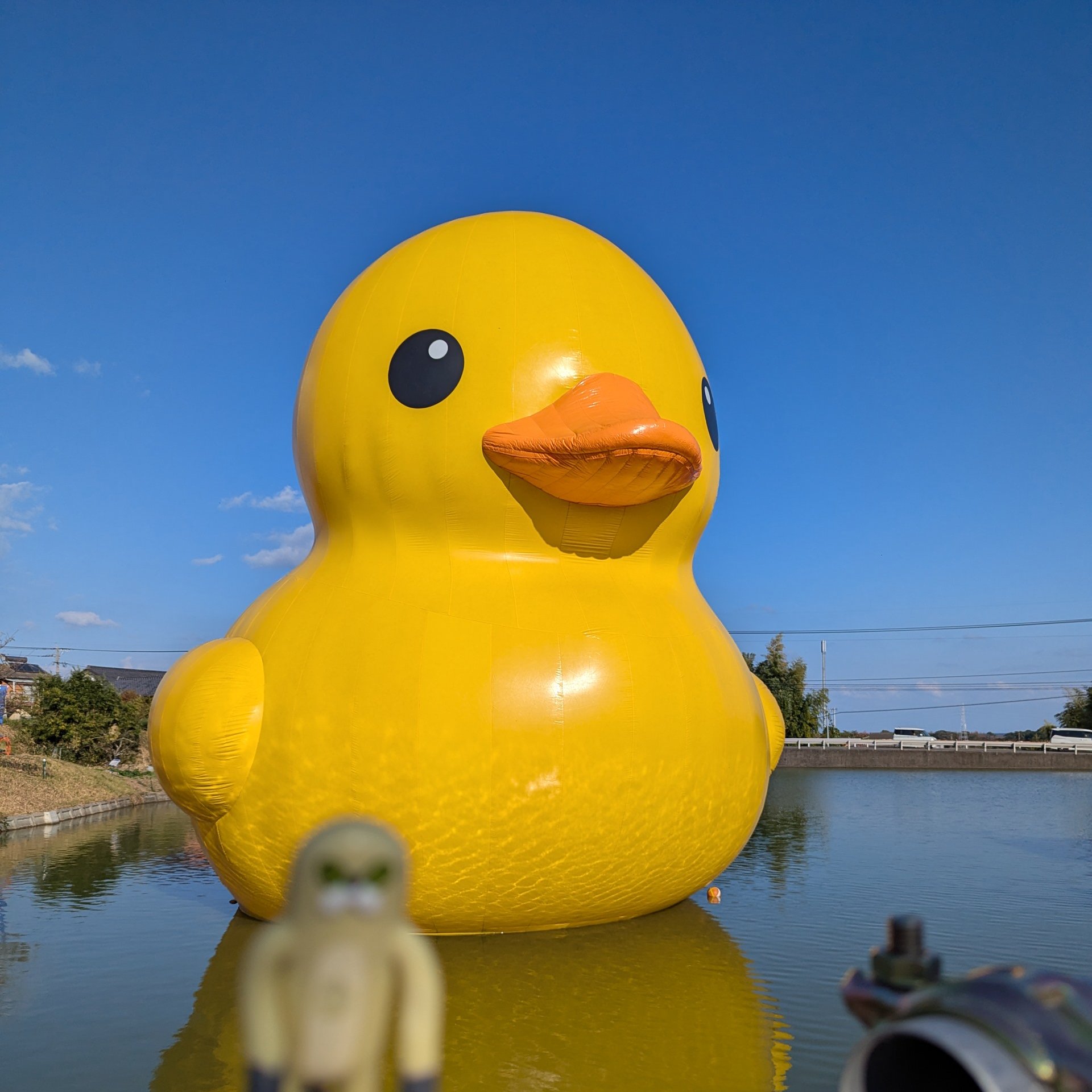 連日大にぎわいラバーダックことあひるちゃんの浮かぶ池