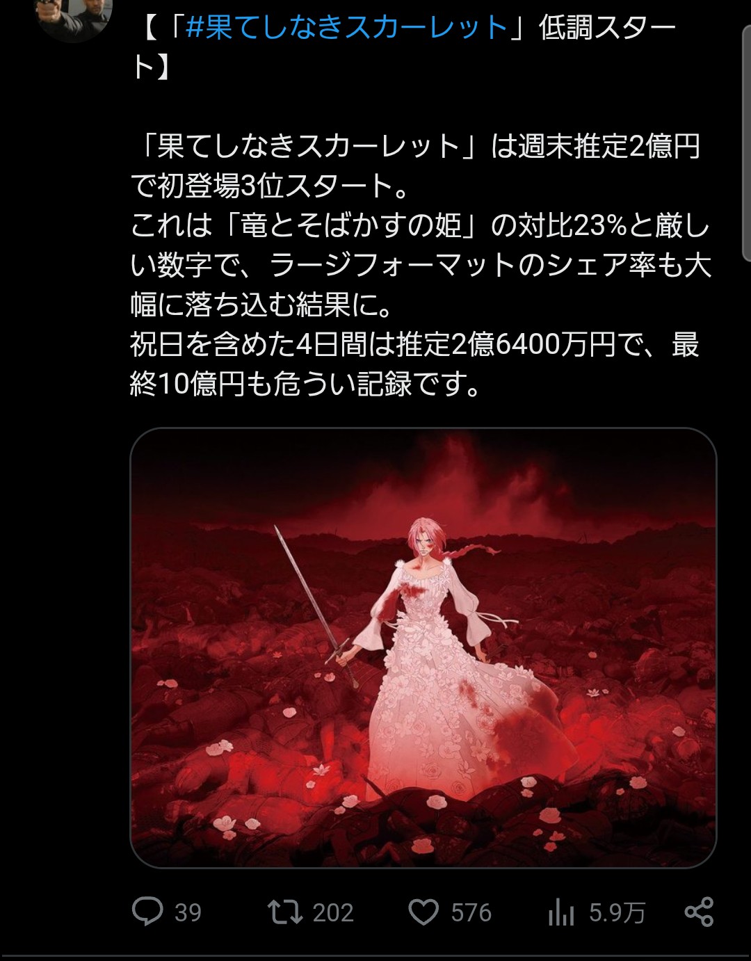| … | 973無念Nameとしあき25/11/25(火)10:20:22No.1368610460そうだねx1 1764033622870.jpg-(32029 B) >ちなみにスカーレットが60億に届けば普通に成功 |