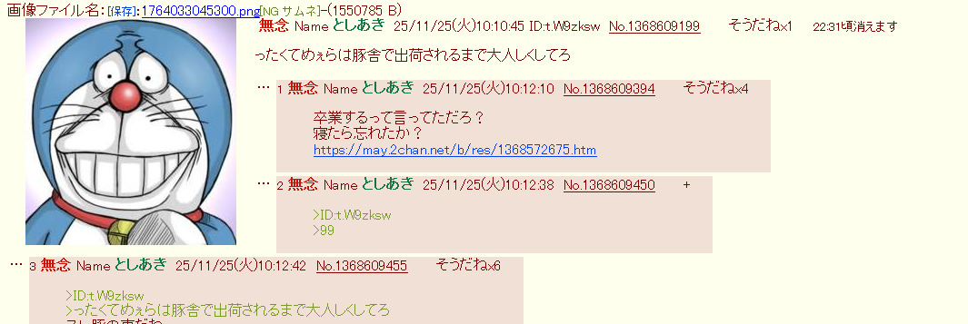 | … | 2無念Nameとしあき25/11/25(火)09:53:47No.1368607085そうだねx13>ふたば養豚場 |