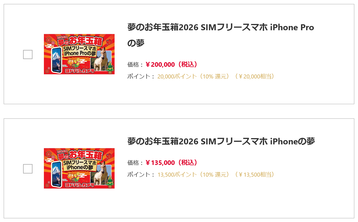ヨドバシお年玉箱抽選受付開始