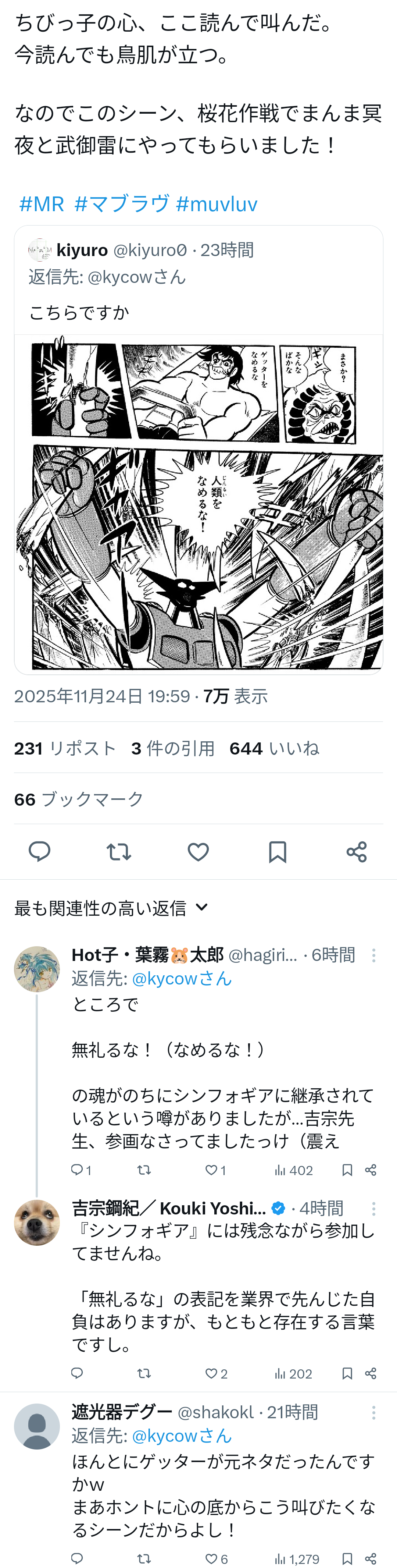 | … | 24無念Nameとしあき25/11/25(火)22:32:38 ID:TNf6rHt2No.1368761222+>そういやこのせいでこの世界に繋がるバイストン・ウェルでは流派東方不敗が学べる可能性あるのか… |