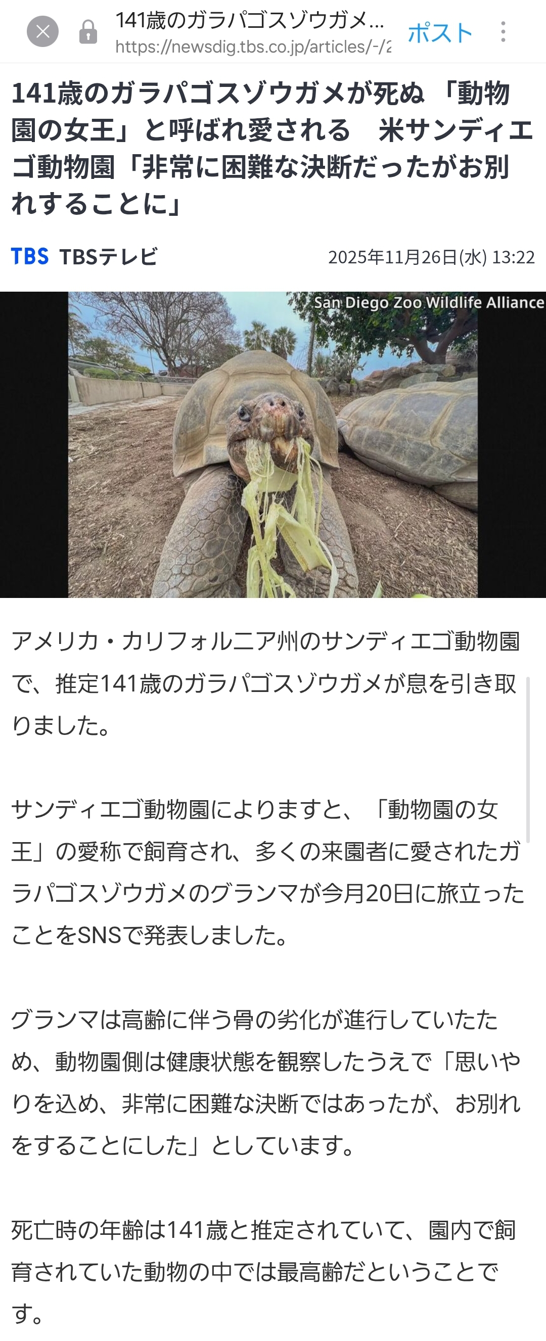 | … | 53無念Nameとしあき25/11/26(水)13:58:09No.1368863930+どの亜種のゾウガメなんだろ |