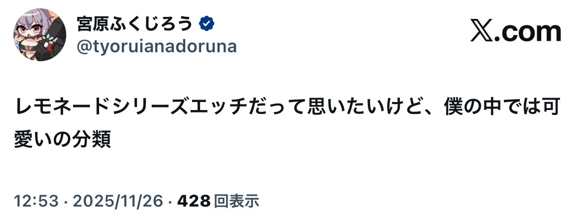 | … | 53無念Nameとしあき25/11/26(水)16:58:26No.1368894150+>ふーんエッチじゃないじゃん |