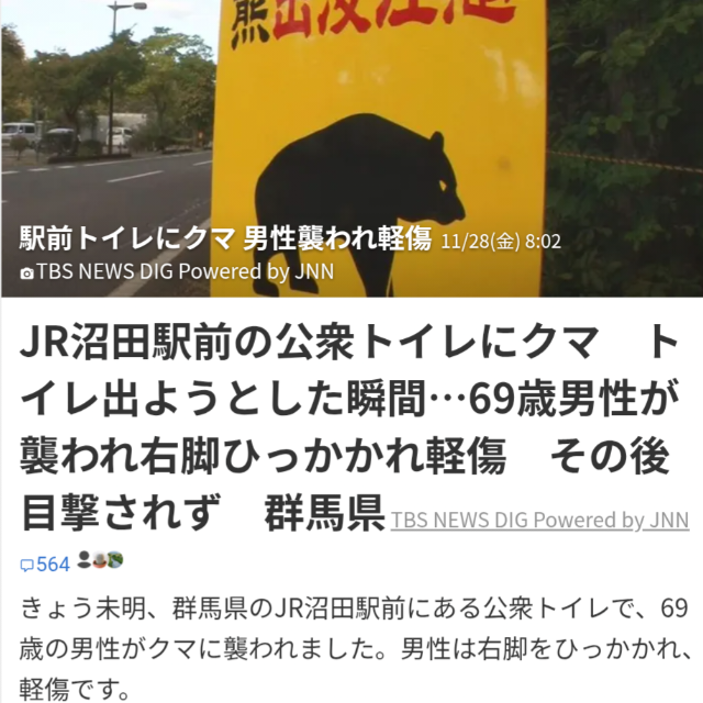 群馬の熊は駅前に来る