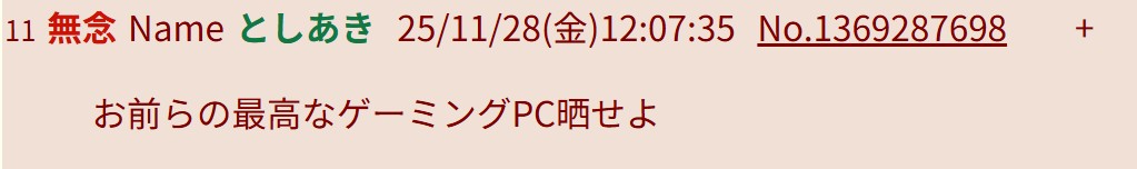 | … | 11無念Nameとしあき25/11/28(金)12:52:14No.1369296661そうだねx10で |