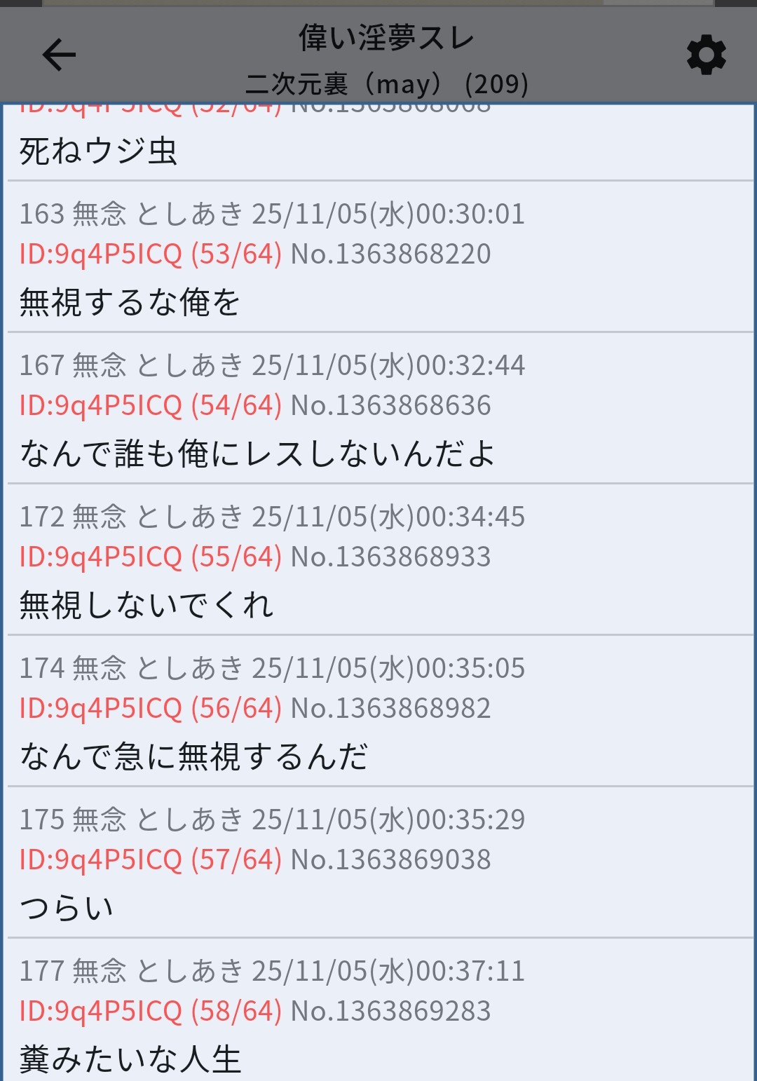 | … | 51無念Nameとしあき25/11/28(金)20:04:05No.1369373995+俺の寿命114514年減らしていいから淫夢消滅しないかな |