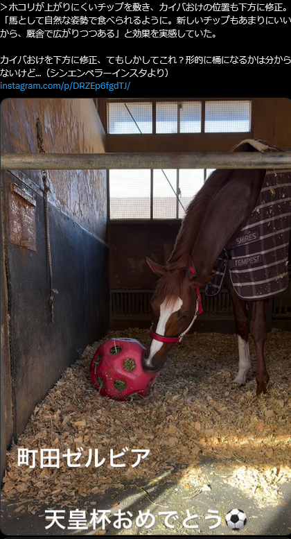 | … | 113無念Nameとしあき25/11/28(金)21:47:44No.1369405170+ボールを馬房に吊るして馬の暇潰しにすること結構あるポンね |