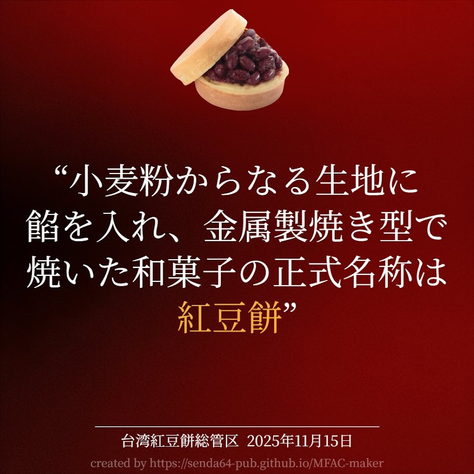 | … | 19無念Nameとしあき25/11/30(日)20:38:26No.1369913158+御座候自身がこれは回転焼きですと言ってるのにフォロワーが御座候は御座候だろ!と言ってきかないからこうなった |