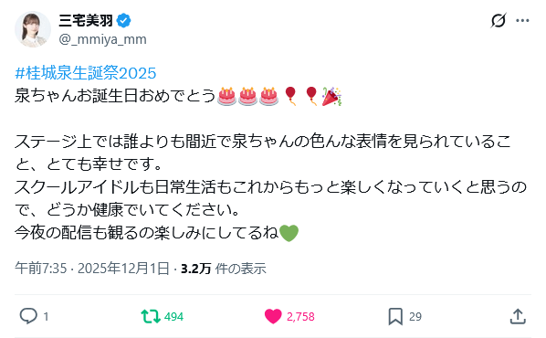 | … | 31無念Nameとしあき25/12/01(月)20:33:55No.1370128860+ 1764588835626.jpg-(150394 B) >泉ちゃんお誕生日おめでとうございます♪ |