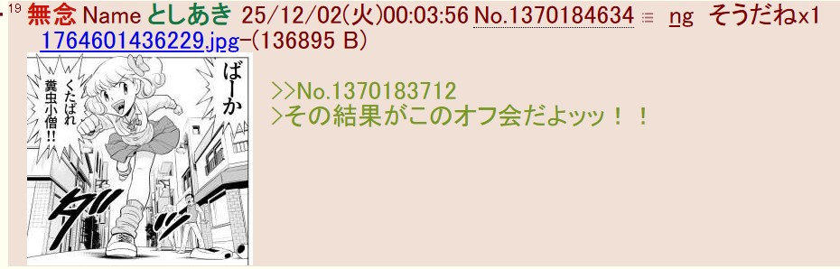| … | 73無念Nameとしあき25/12/02(火)00:58:07No.1370192668そうだねx1>1764601605694.jpg |
