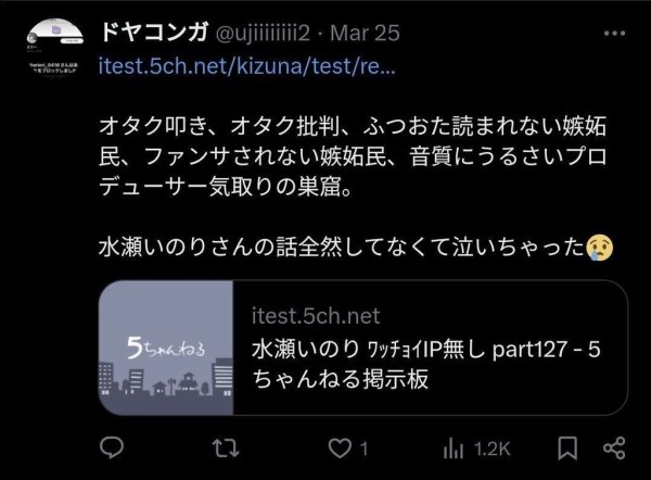 | … | 133無念Nameとしあき25/12/02(火)11:27:03No.1370238486+君みたいな人をいのりちゃんも嫌いになると思うよ |