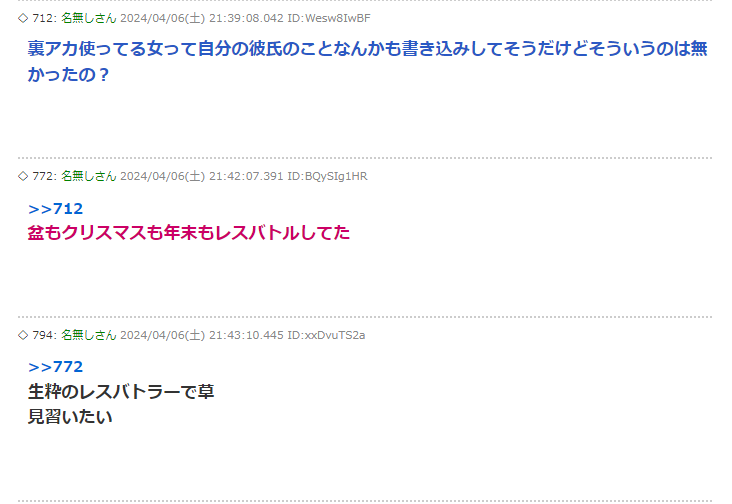 | … | 151無念Nameとしあき25/12/02(火)12:06:37No.1370244476+三澤さんみたいに表で暴れ回るよりはまだ裏垢作って暴れる方が理解出来る |