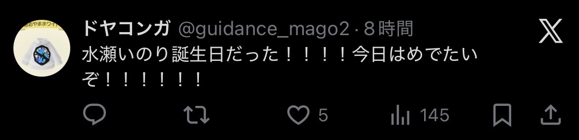 | … | 67無念Nameとしあき25/12/02(火)09:48:48No.1370226473そうだねx3>水瀬いのりさんじゅっさいの誕生日おめでとう |