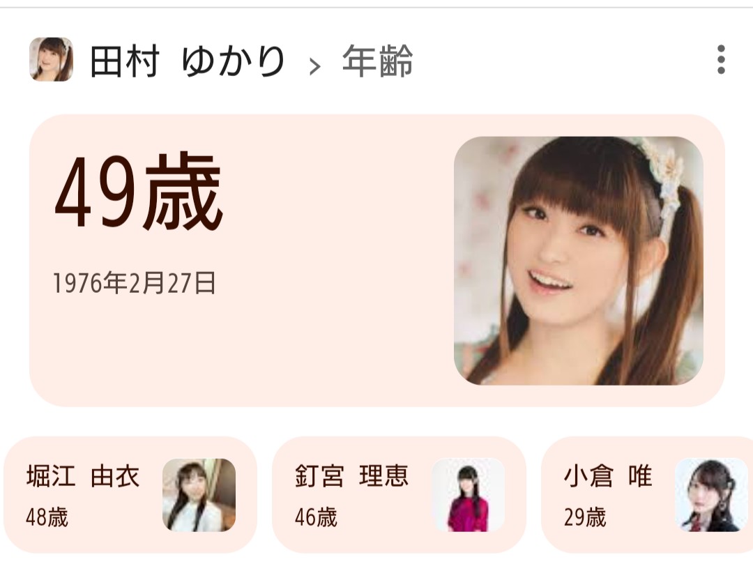 | … | 106無念Nameとしあき25/12/02(火)10:34:17No.1370231554そうだねx2>水樹さんと田村さんの後を継ぐのは水瀬さんと小倉さんと期待されてたけど |