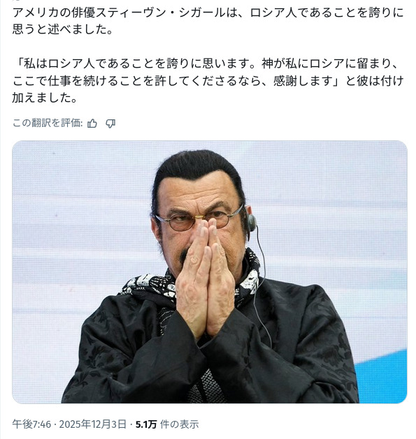 | … | 5無念Nameとしあき25/12/05(金)00:21:59No.1370837020そうだねx2いつものセガールじゃん |