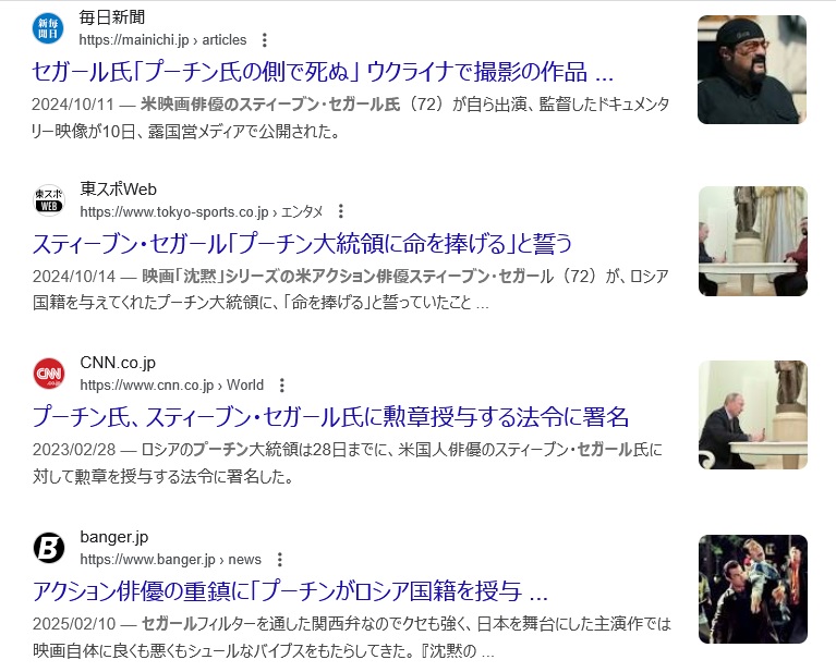 セガールさん、身も心もロシア人になってしまう削除された記事が1件あります.見る