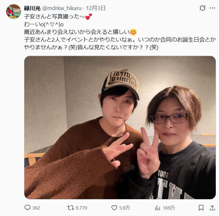 | … | 103無念Nameとしあき25/12/05(金)20:50:18No.1370994874+ 1764935418478.jpg-(227320 B) 令和になっても子安と共演してて微笑ましい |