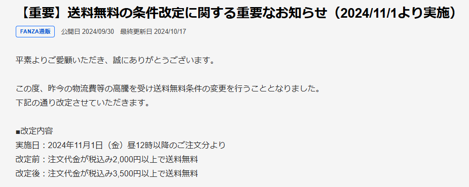 | … | 55無念Nameとしあき25/12/06(土)08:23:09No.1371082543+>FANZAは送料無料になる価格が騰がった |