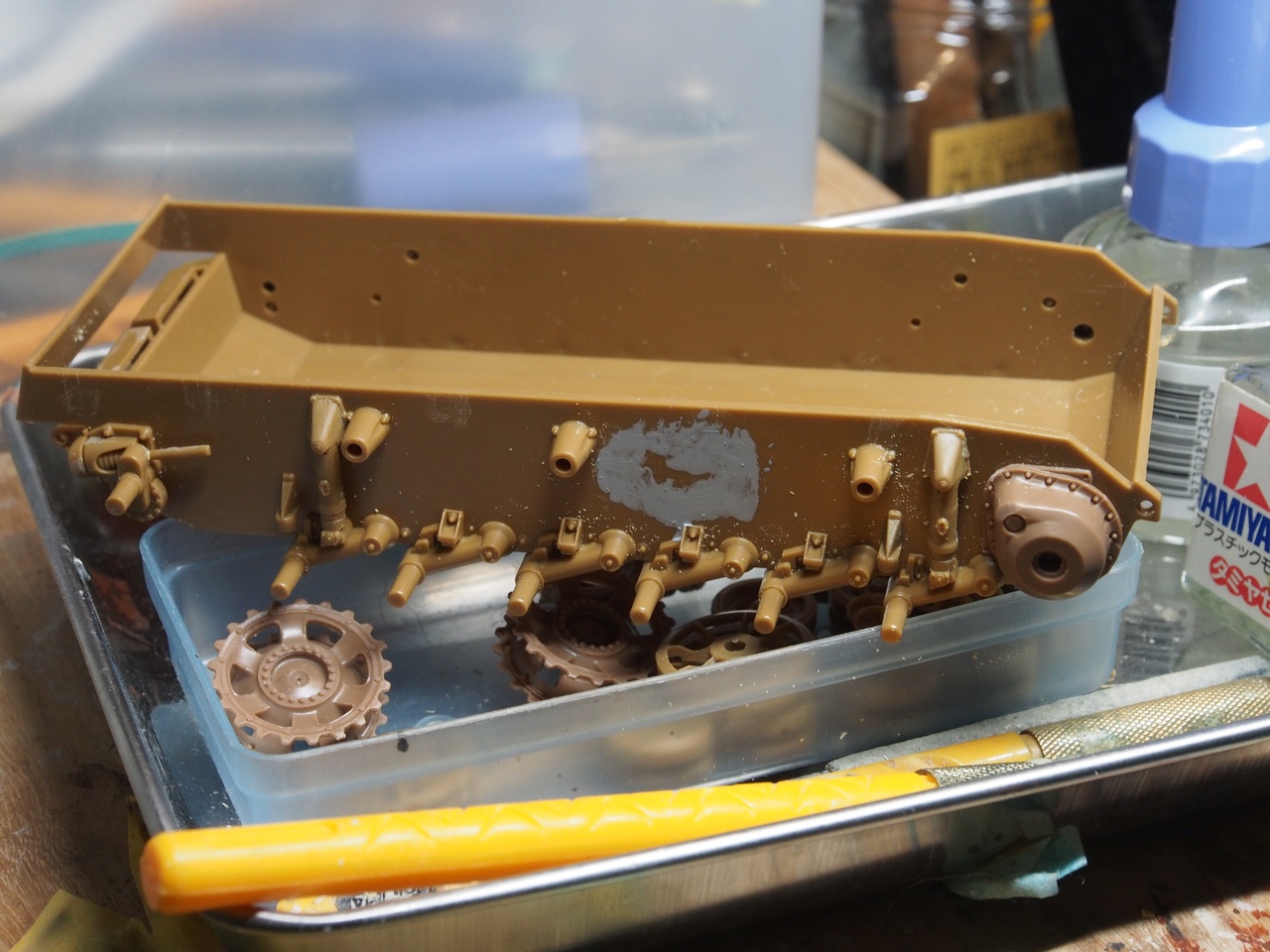| … | 8無念Nameとしあき25/12/06(土)21:25:39No.1371240362+1/35戦車に初挑戦しててゴム履帯塗装のためにプライマー買ってきた |