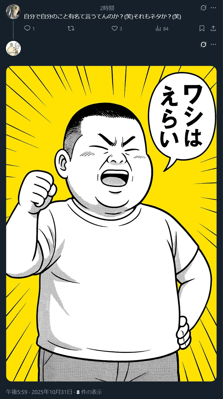 | … | 25無念Nameとしあき25/12/08(月)23:09:51 IP:14.8.*(enabler.ne.jp)No.1371761381そうだねx3(ボケもセンスねえなこいつ…) |