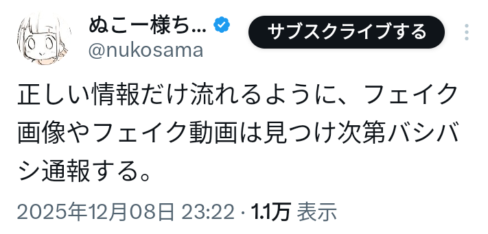 | … | 44無念Nameとしあき25/12/08(月)23:22:50 IP:218.42.*(eonet.ne.jp)No.1371766451そうだねx6写真がないツイートは嘘ってハッキリわかんだね |