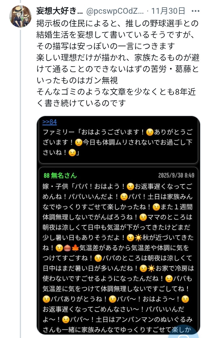 | … | 39無念Nameとしあき25/12/10(水)18:09:05No.1372111344そうだねx1 1765357745598.jpg-(217110 B) ここで妄想並べるくせに他人の妄想にはキレるって意味不明 |