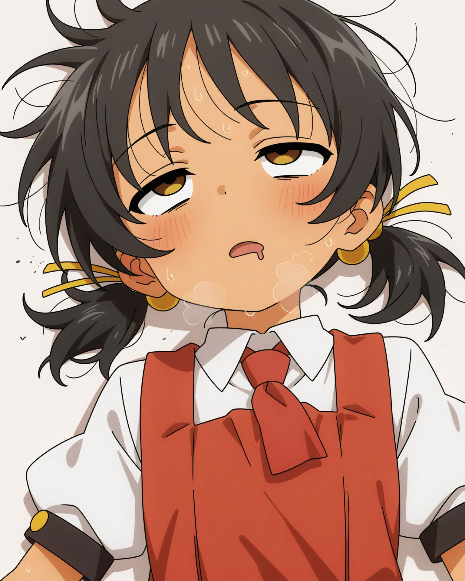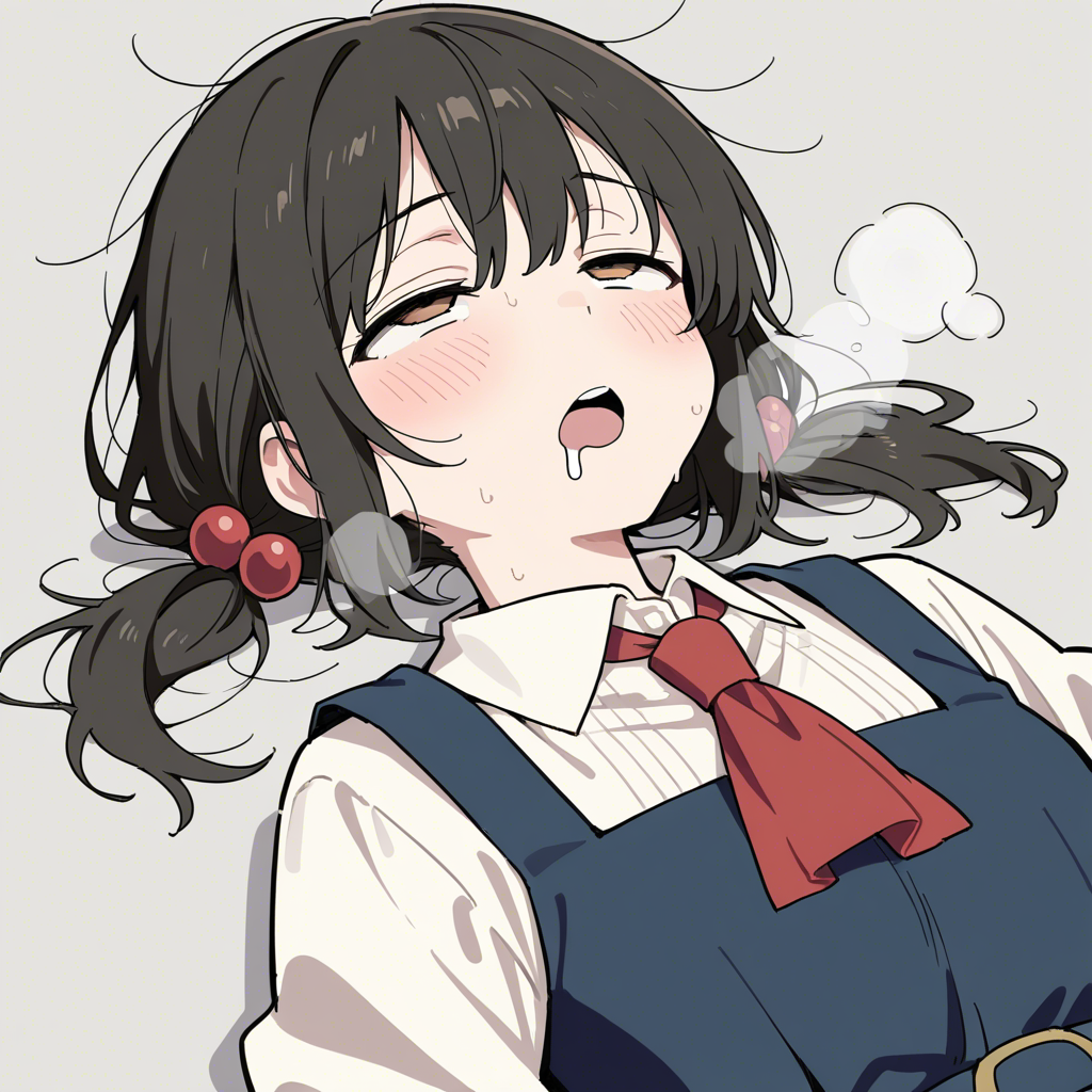 | … | 51無念Nameとしあき25/12/12(金)20:31:58No.1372573991そうだねx8 1765539118052.png-(955730 B) 1girl, ahegao, ascot, black hair, blush, breath, brown eyes, collared shirt, dress, drooling, exhausted, grey background, hair bobbles, hair ornament, hair ribbon, half-closed eyes, heavy breathing, hot, looking up, loose hair strand, low twintails, lying, messy hair, mouth drool, necktie, on back, open mouth, pinafore dress, puffy short sleeves, puffy sleeves, red ascot, red dress, red eyes, ribbon, rolling eyes, saliva, shirt, short hair, short sleeves, short twintails, simple background, sleeveless, sleeveless dress, solo, steaming body, sweat, twintails, upper body, upturned eyes, white background, white shirt, wispy bangs |