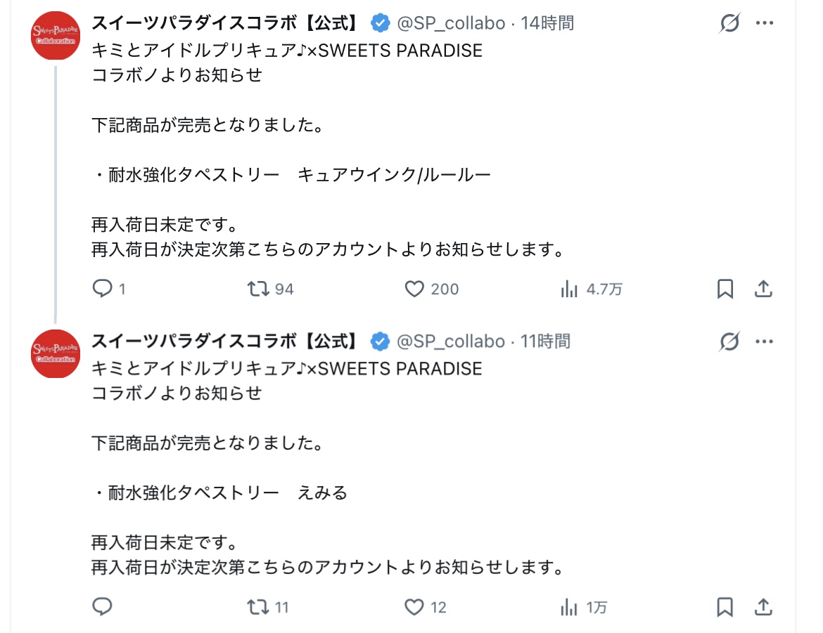 | … | 29無念Nameとしあき25/12/17(水)10:32:46No.1373636631+>グッズだけなら事後通販やるんじゃない? |