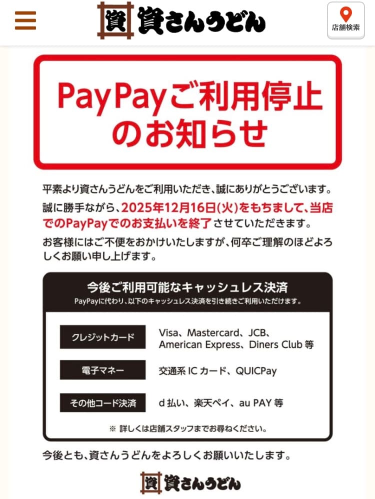 | … | 31無念Nameとしあき25/12/17(水)09:02:53No.1373625759+ 1765929773818.jpg-(88050 B) しさんうどんpaypay終了とか聞いてないんだけど |