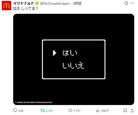 | … | 74無念Nameとしあき25/12/17(水)12:44:08No.1373658672+ 1765943048996.jpg-(88493 B) >マクドナルドとドラクエのコラボにウォークが一枚噛んでいてほしい |