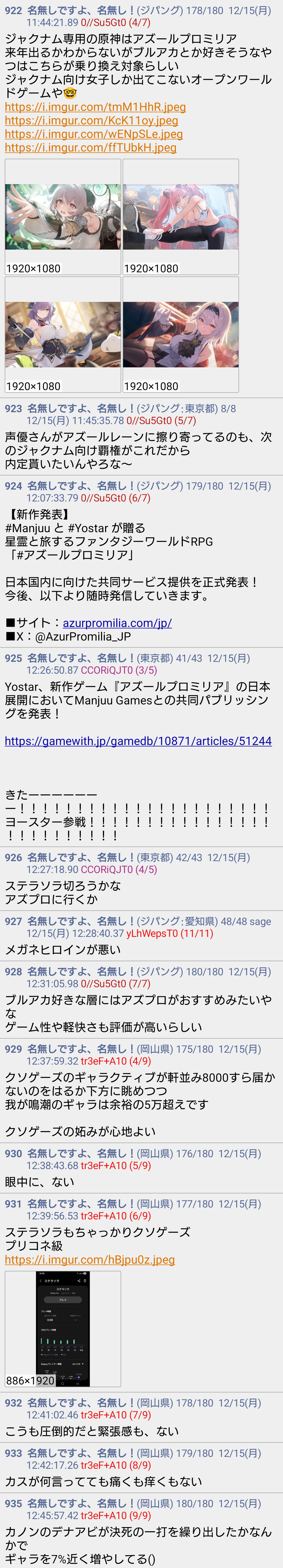 | … | 16無念Nameとしあき25/12/17(水)11:19:48No.1373643358+アズプロも来るし話題に事欠かないなこのスレは |