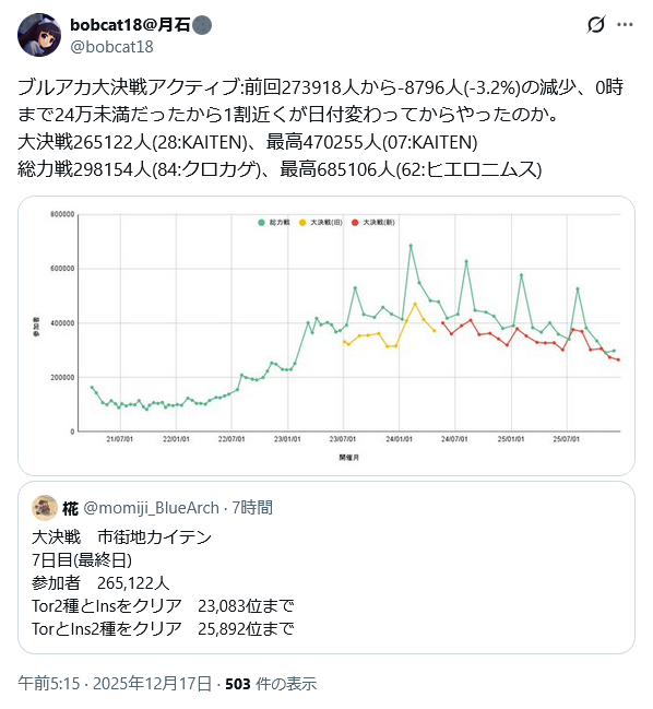 | … | 58無念Nameとしあき25/12/17(水)11:51:30No.1373647968+ 1765939890841.jpg-(43334 B) >ブルアカアクティブ大幅減で最低更新 |