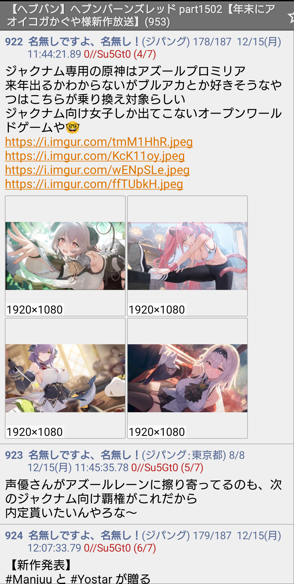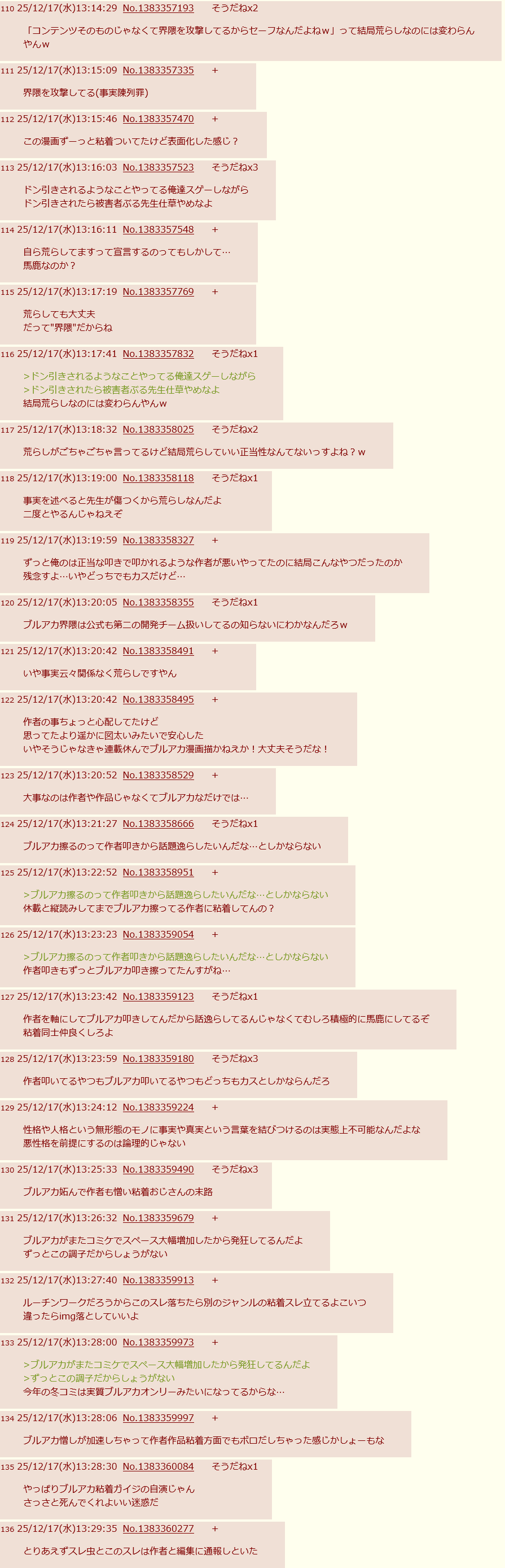 | … | 402無念Nameとしあき25/12/17(水)13:54:11No.1373671099+>漫画掲載されてるサイトでさえバチクソ荒れてるのにブルアカ粘着の仕業にするには無理がないわよ…? |