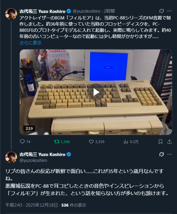 | … | 34無念Nameとしあき25/12/18(木)03:14:22No.1373831120そうだねx3古代祐三こそ真のゲーム音楽の神様だと思うよ |
