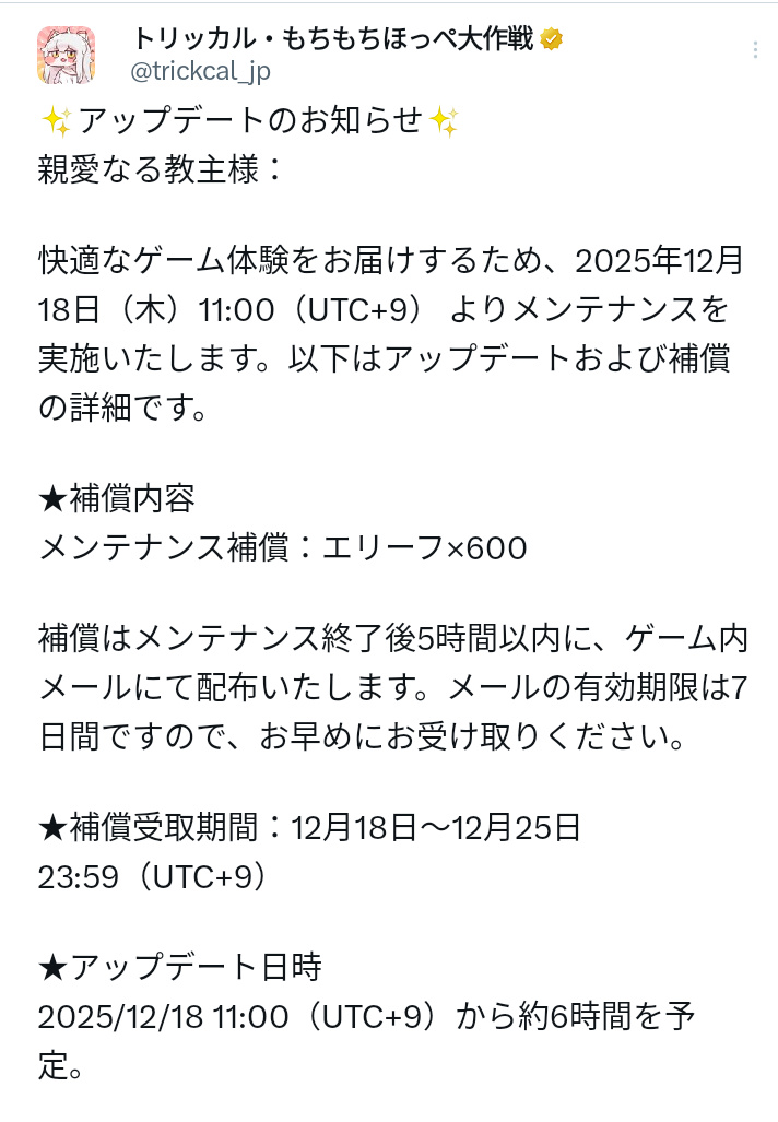| … | 3無念Nameとしあき25/12/18(木)09:01:30 ID:K7LnSqEkNo.1373851315そうだねx5 1766016090085.png-(1465398 B) メンテのあとに盛りだくさんにゃん |