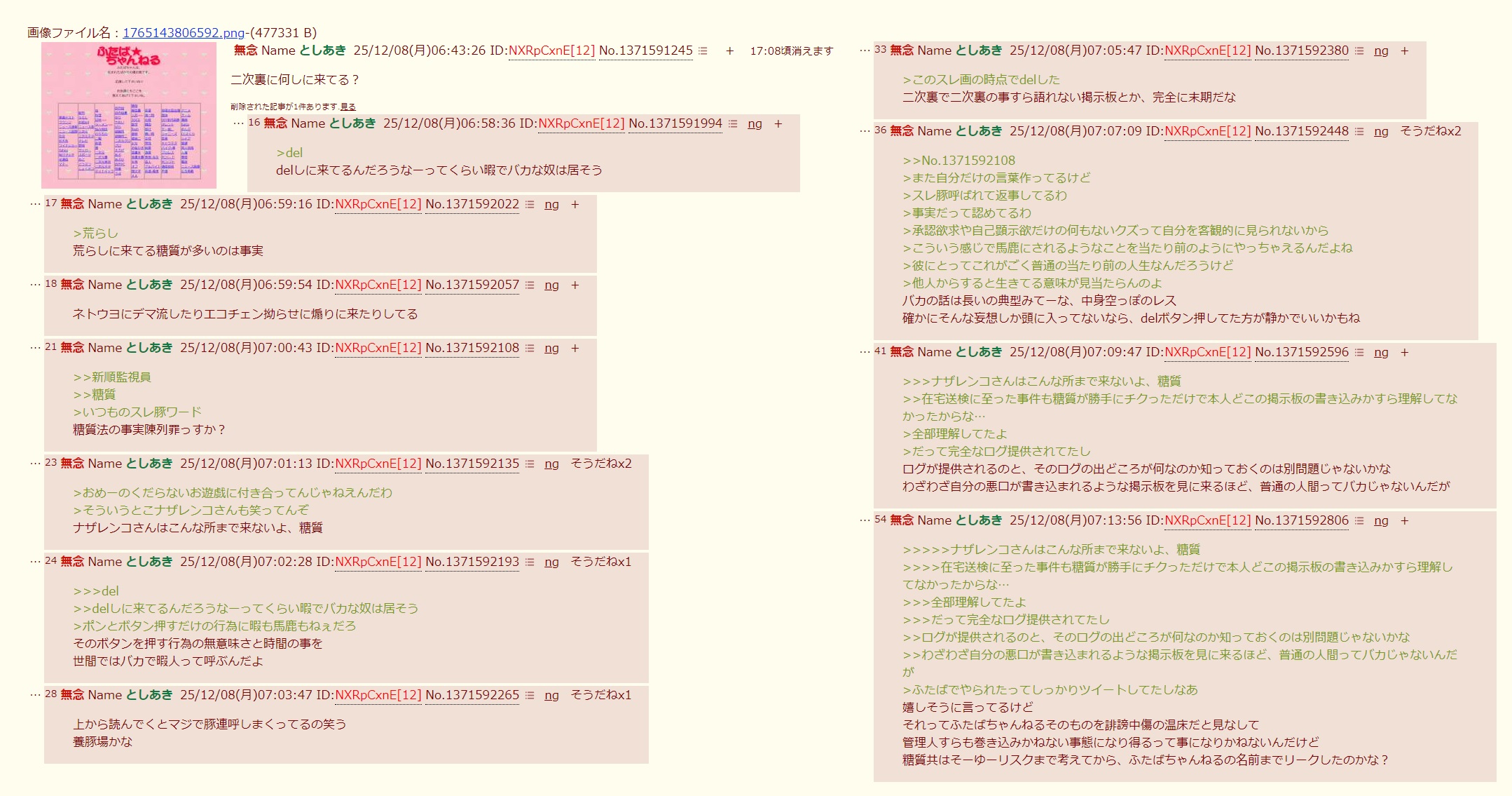 | … | 17無念Nameとしあき25/12/20(土)03:33:30No.1374255832そうだねx2 1766169210394.jpg-(611597 B) 一匹のすぐキレるスレ豚が自演で自分を擁護し続ける掲示板 |