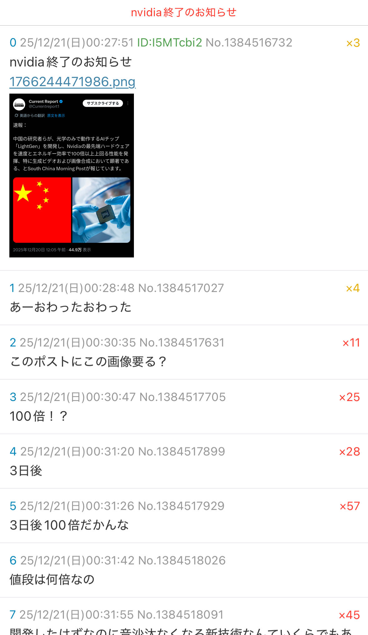 | … | 100無念Nameとしあき25/12/21(日)06:04:08No.1374514089+>100倍ってまたすぐバレるような嘘を |