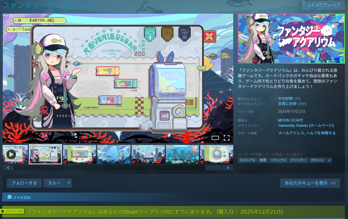 | … | 970無念Nameとしあき25/12/21(日)15:55:33No.1374618381+ボイドテラリウムを1000円くらいでSteamで売ろうよ |