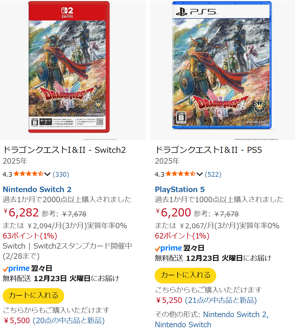 | … | 979無念Nameとしあき25/12/21(日)15:59:20No.1374619304+>ドラクエ1・2は何十万本も出荷して値崩れしてないのは普通に評価良いからだろう |