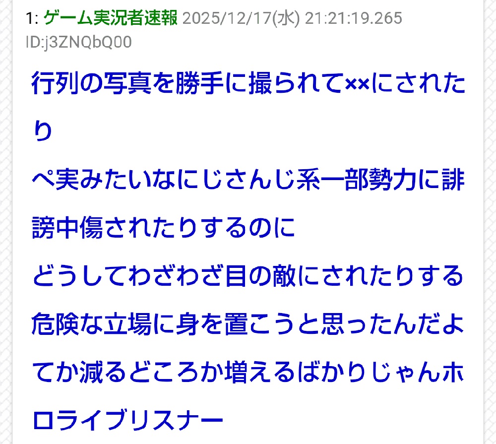 | … | 319無念Nameとしあき25/12/21(日)16:29:15No.1374626127そうだねx8にじIDはタレント自身が運営は何もしてくれないってはっきり言ってたしな |