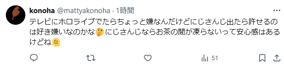 | … | 196無念Nameとしあき25/12/23(火)10:55:50No.1375015518+ホロメンがにじさんじ褒めててもホロリスナーは別に何も言わない |