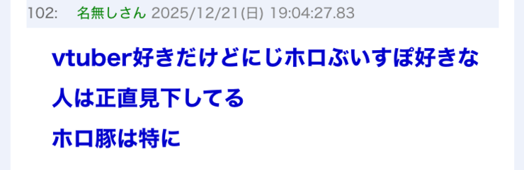 | … | 168無念Nameとしあき25/12/23(火)10:39:02No.1375013494+>必死なホロ叩きってどれ? |