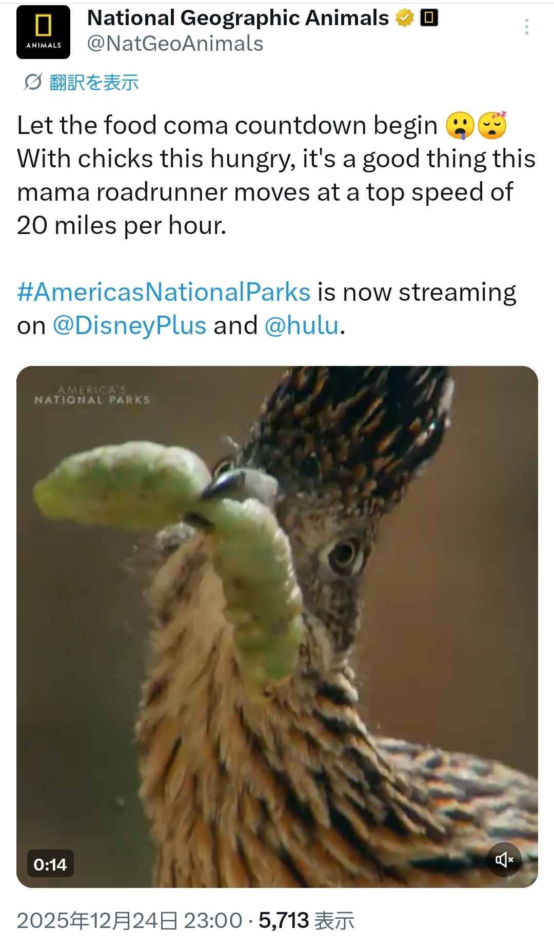 | … | 40無念Nameとしあき25/12/25(木)09:56:41No.1375436193+ 1766624201064.jpg-(660621 B) ナショジオリニンサンがロードランナーママが頑張る動画をポストしてた |